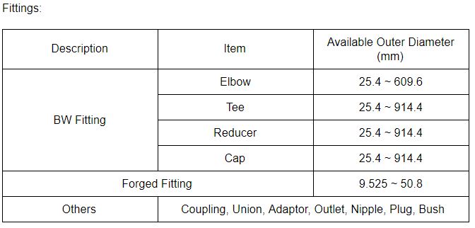 此外,管道、管件和法蘭的平均生產(chǎn)范圍如下所示: