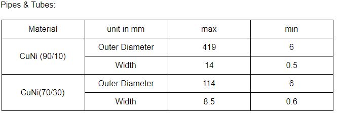 所列產(chǎn)品為除管材外可使用CuNi生產(chǎn)的產(chǎn)品: