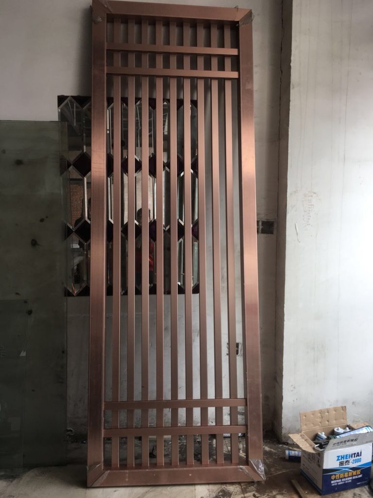 二、玫瑰金不銹鋼焊接拋光屏風(fēng):