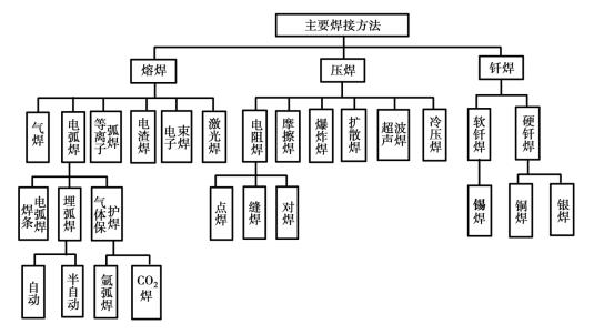 上述每一類中,根據所用熱源的不同或其他特點,又可分為若干類型,主要的焊接方法如圖4.0.1所示。